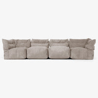This four-piece modular sofa gives you complete freedom to arrange seating to suit your home and lifestyle. Set it up as a classic L-shaped sofa for a cosy family corner, perfect for lounging, reading, or movie nights. Or split the pieces into individual seats to provide extra seating when hosting guests. Each section moves easily to adapt to your needs, offering soft, supportive seating with a relaxed bean bag feel and a structure that works for everyday family life.