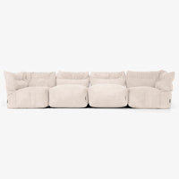 This four-piece modular sofa gives you complete freedom to arrange seating to suit your home and lifestyle. Set it up as a classic L-shaped sofa for a cosy family corner, perfect for lounging, reading, or movie nights. Or split the pieces into individual seats to provide extra seating when hosting guests. Each section moves easily to adapt to your needs, offering soft, supportive seating with a relaxed bean bag feel and a structure that works for everyday family life.