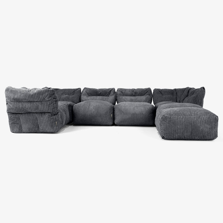 Lounge Pug 5 Piece Closed Chaise Modular Sofa Set Cord Black– Big Bertha Original UK