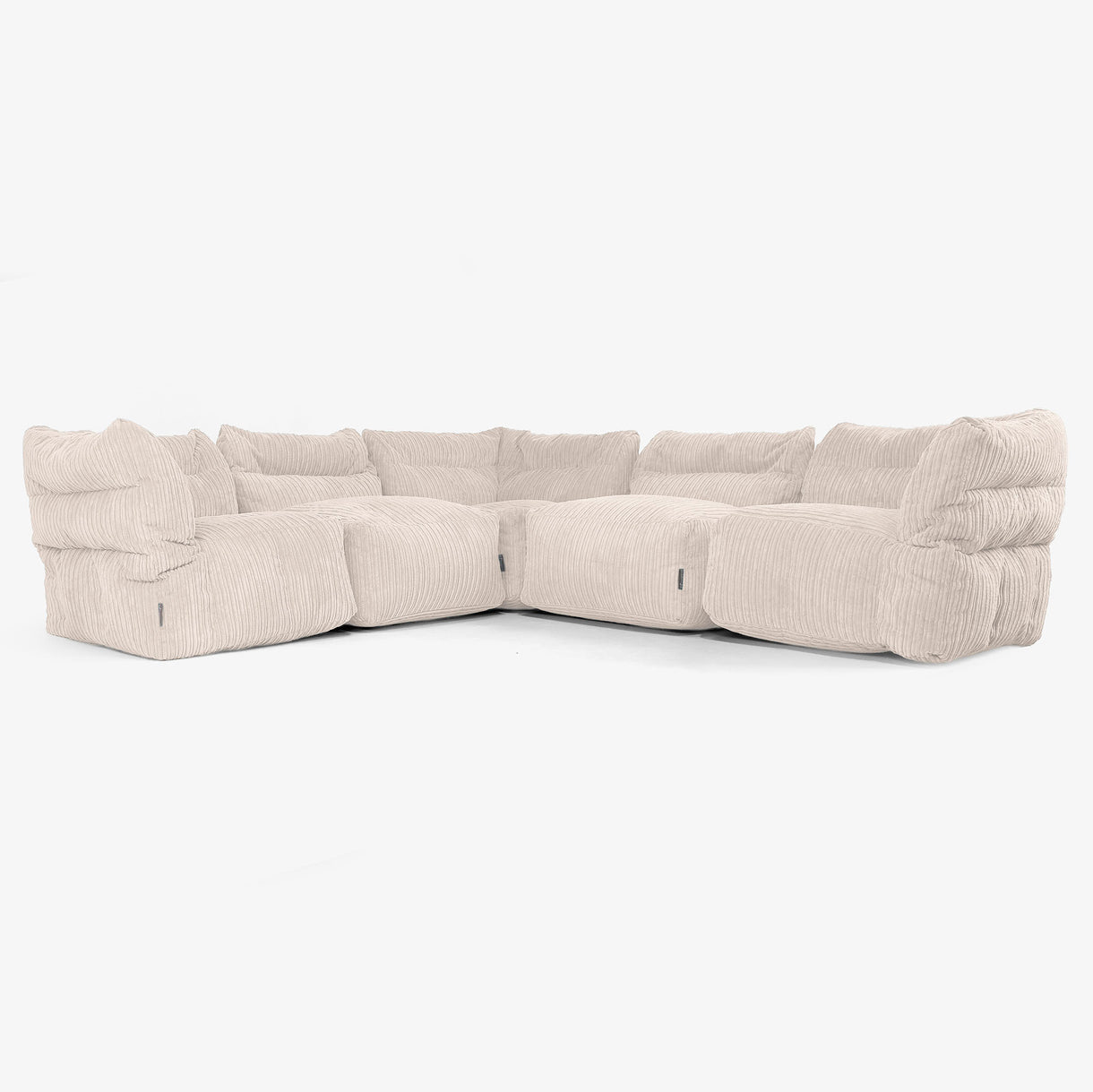 Lounge Pug 5 Piece Corner Modular Sofa Set Cord Ivory– Big Bertha Original UK