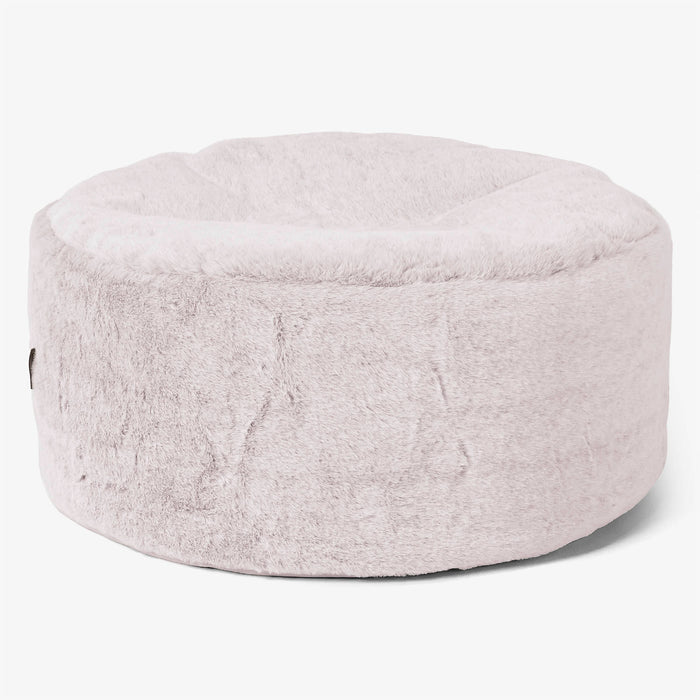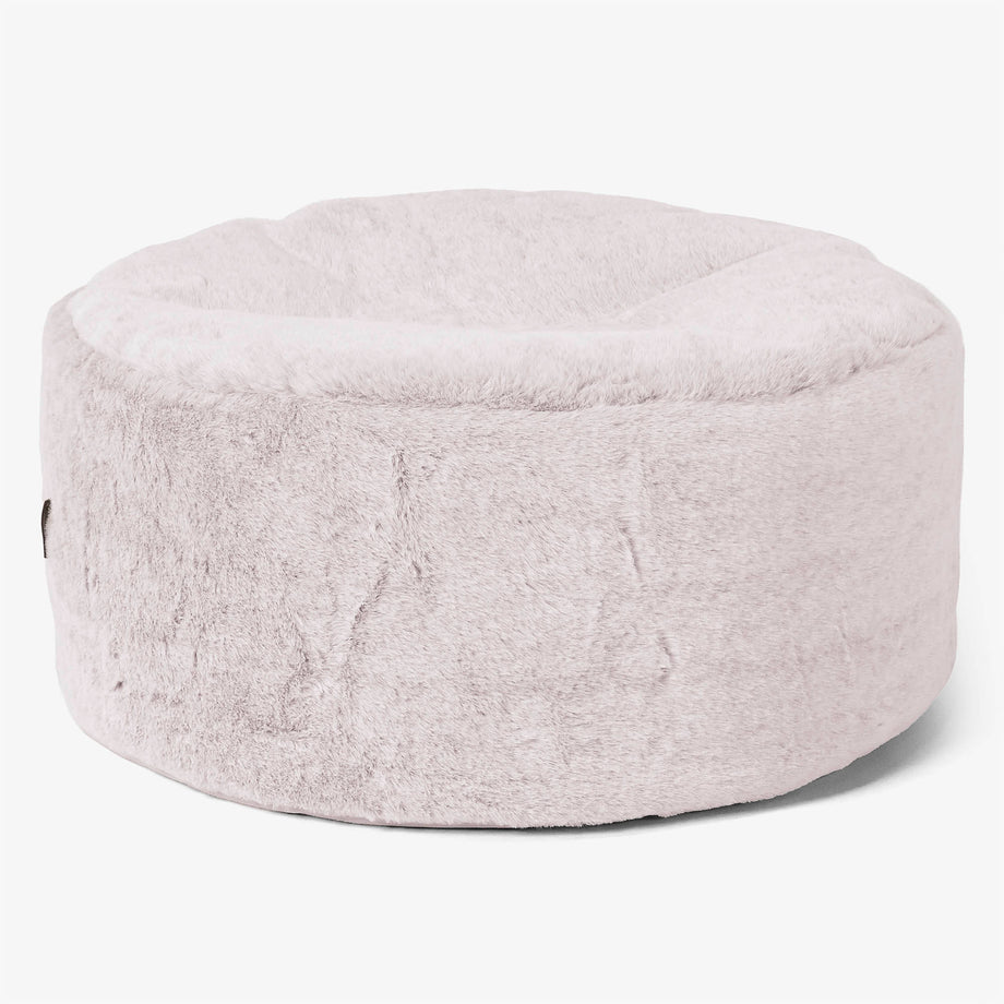 Lounge Pug Large Round Footstool Rabbit Faux Fur Dusty Pink Bean Bag Pouf Small Ottoman Footrest– Big Bertha Original UK