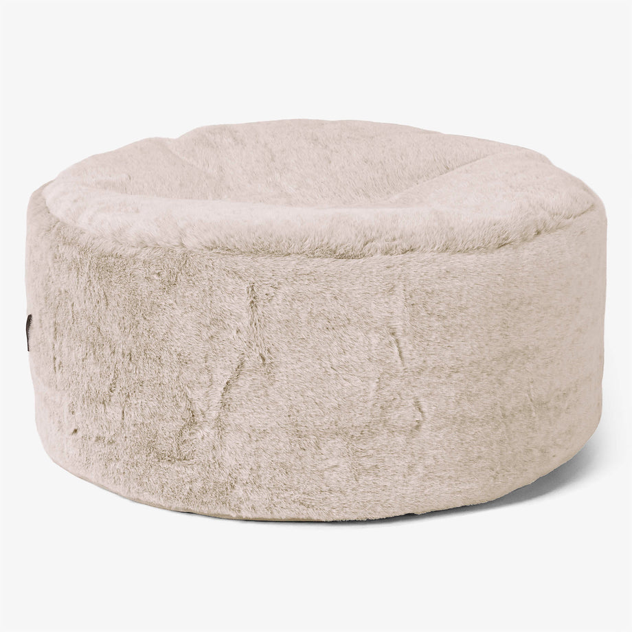 Lounge Pug Large Round Footstool Rabbit Faux Fur Golden Brown Bean Bag Pouf Small Ottoman Footrest– Big Bertha Original UK