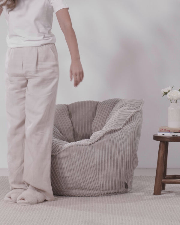 Lounge Pug Natalia Sacco Bean Bag Chair Cord Dovetail Grey Large Beanbags– Big Bertha Original UK