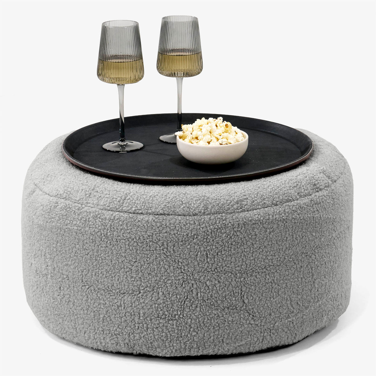 Lounge Pug Ottoman Tray Top Pouf Bean Bag Boucle Grey– Big Bertha Original UK