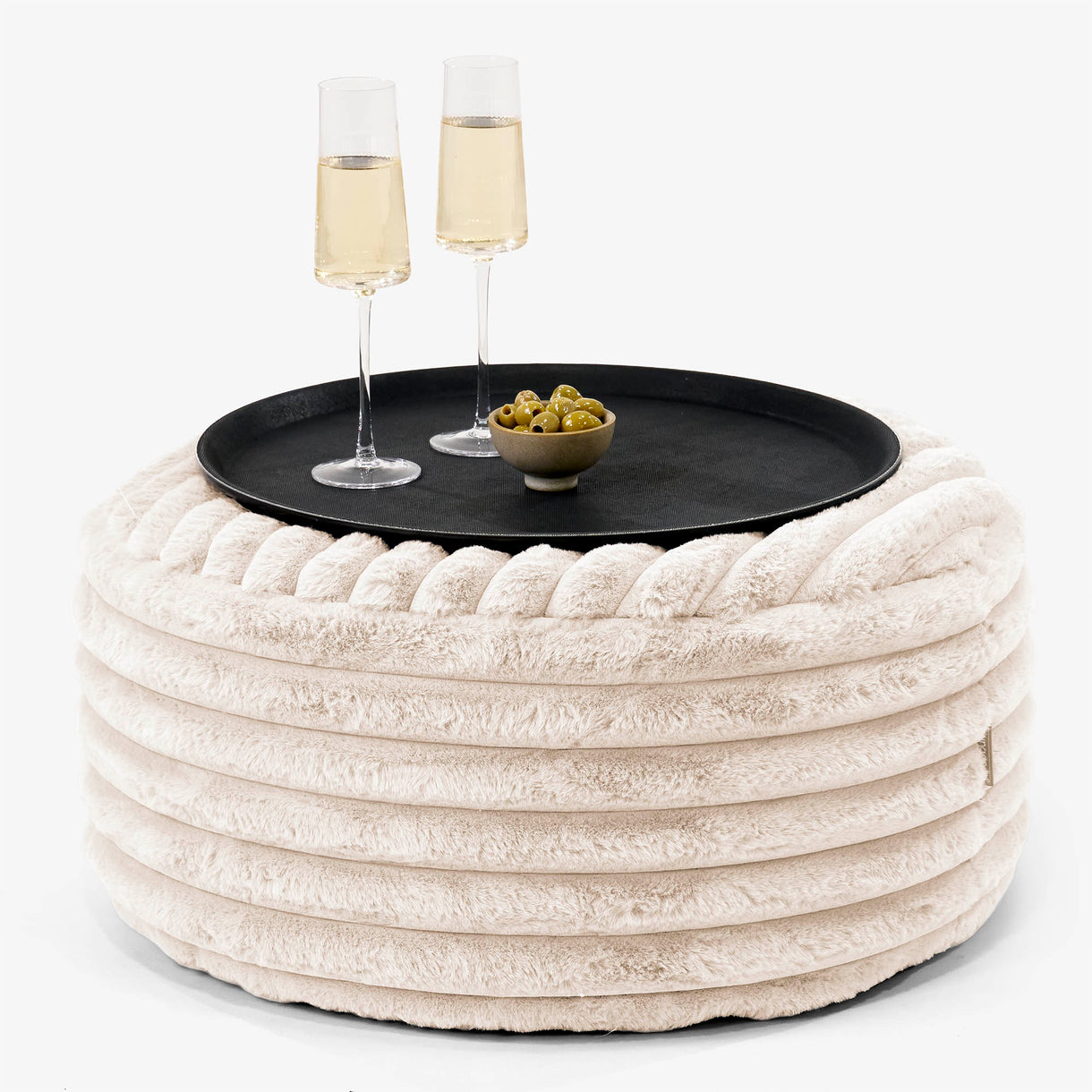 Ottoman Pouf with a Serving Tray Ultra Plush Cord Cream