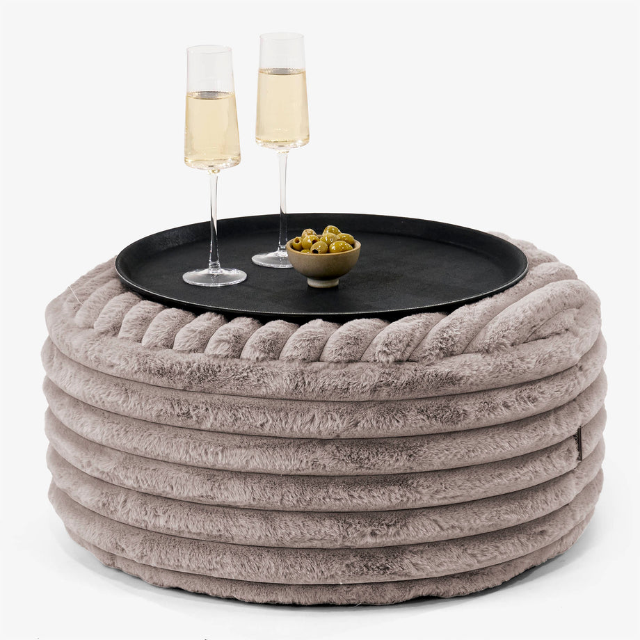 Ottoman Pouf with a Serving Tray Ultra Plush Cord Minky