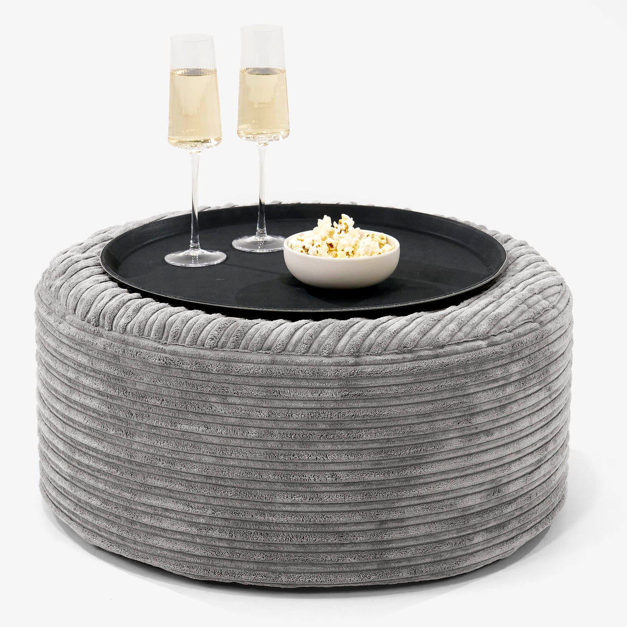 Lounge Pug Ottoman Tray Top Pouf Bean Bag Cord Graphite Grey– Big Bertha Original UK