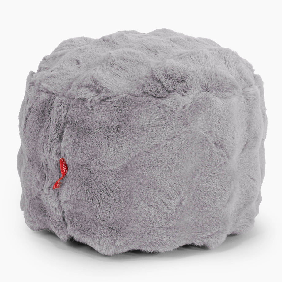Lounge Pug Small Round Footstool Bubble Faux Fur Wave Grey Bean Bag Pouf Small Ottoman Footrest– Big Bertha Original UK