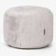 Small Round Footstool Fluffy Faux Fur Rabbit Light Grey